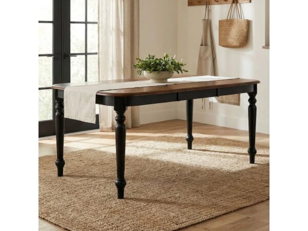 Curved pilasters offer shapely supports for this dining table.
