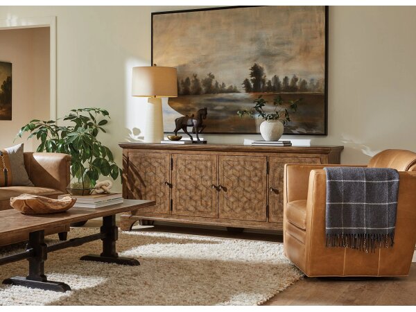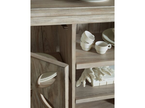 This Mercury 76" TV Console features a contemporary, simplistic design, crafted from rubberwood solids and scratch-resistant melamine in a driftwood gray finish. It provides two drawers, an open compartment with wire management, tapered block feet, antiqu