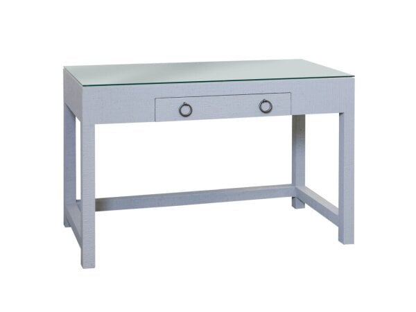 Decorative 3-drawer chest in a soft, timeworn blue finish with acanthus leaf base detailing and bun feet. Crafted of hardwood solids and finished with a faux lock top drawer for romantic style.
