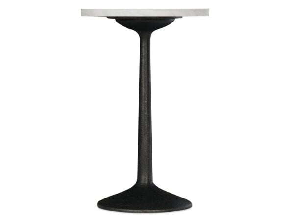 Compact martini table with a cast iron base and a sandblasted, waxed marble top in soft neutrals. An elegant chairside accent.