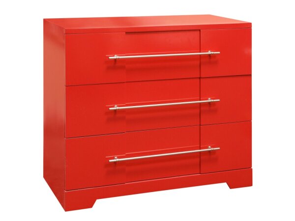 Dann Foley Lifestyle Red Three Drawer Wooden Dresser With Long Gold Metal Pulls
