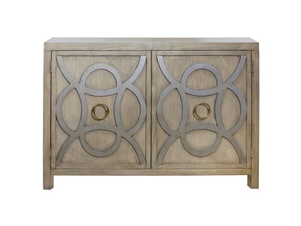 Vintage Accent Cabinet Grey Washed Finish On Pine Veneer Two Door Design