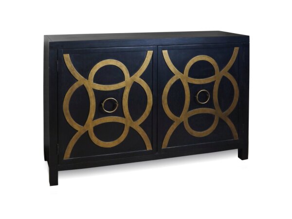 Black Vintage Cabinet Black And Gold Painted On Pine Veneer Two Door Design