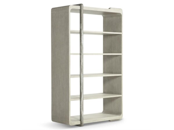 Compact accent table in white oak and metal with a Desert Oak finish and brushed brass legs. A slim rectangular top fits tight spaces for drinks or decor.