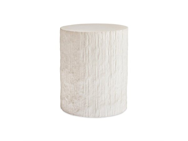 Reeding makes its mark on this drum-shaped accent table.