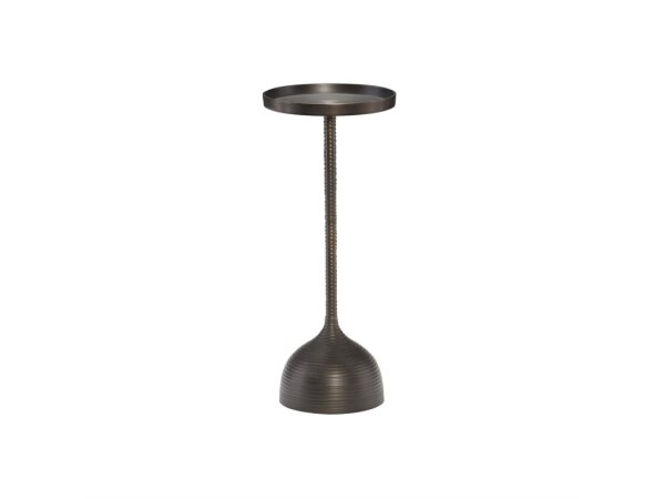Though compact in size, this cast aluminum accent table captures attention with its elegant, sculptural shape and warm matte finish.