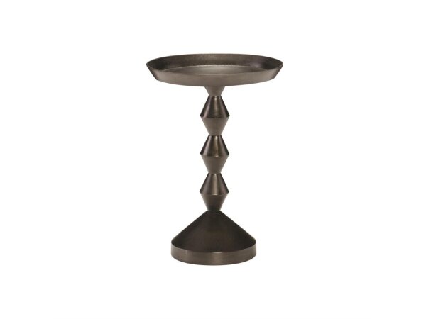 Crafted from cast aluminum in a black nickel finish, this sculptural chairside table offers a chic industrial look.