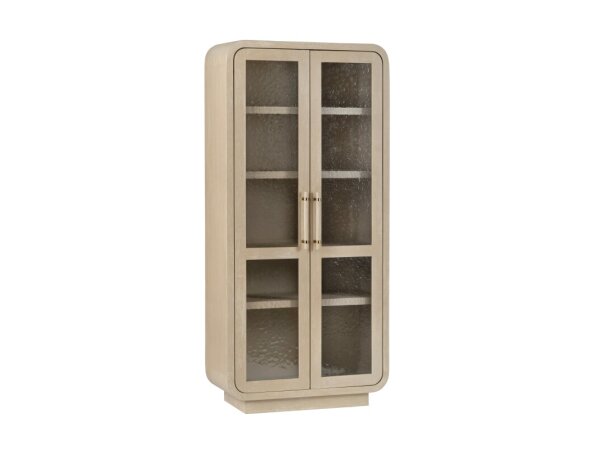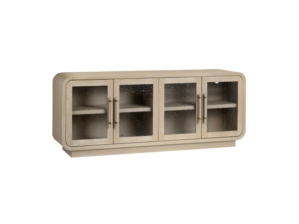 Accent chest of wood and raffia in a Sand Dollar white lacquered grasscloth with chow-style legs and champagne-tone bar pulls. Three drawers offer stylish storage.