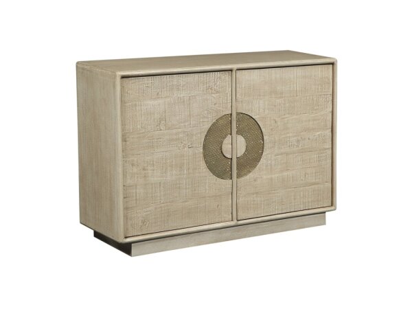 Round accent table with a white marble top and a cone-shaped, wire-brushed quartered oak veneer base in dark Mink. Measures 22.25 in. round x 24.25 in. high.