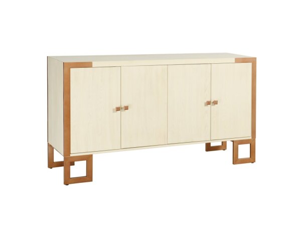 42" (106.7 cm) Living Room Commerce and Market Weaver 2-Door Accent Chest enriched by Mango Solids, Bone and Iron, making it a distinctive interior accent.