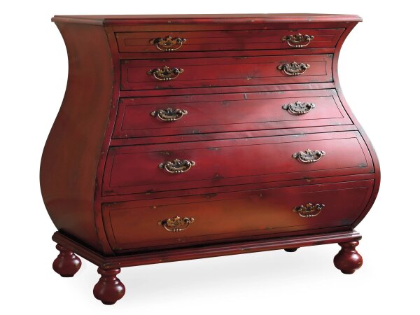 TV-ready credenza with four mirrored fretwork doors and a scalloped base in warm Caramel Froth with Paris Vintage accents. Includes adjustable shelving and rear wire management.