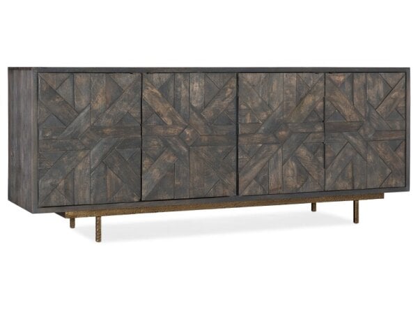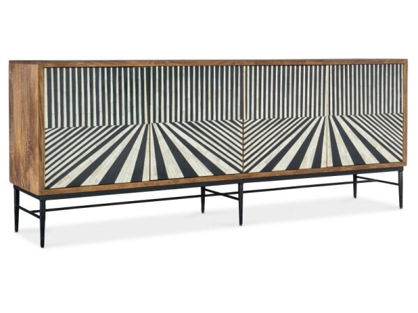 80" (203.2 cm) Living Room Commerce and Market Linear Perspective Credenza enriched by Mango Solids, Bone and Iron, making it a distinctive interior accent.