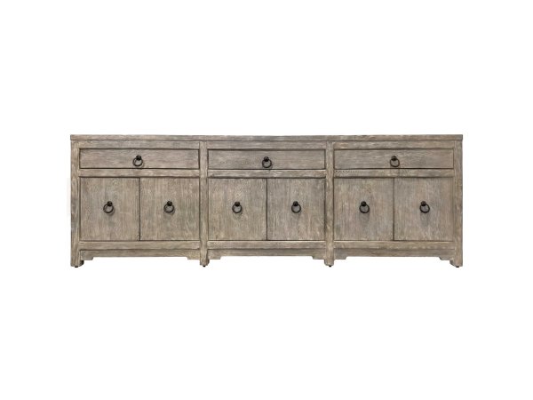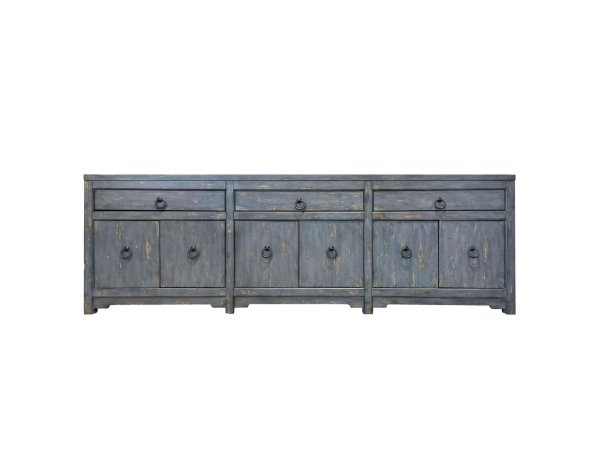 Discover the distinctive Edinburg console, which combines classic style with functionality. Soft-close doors hide adjustable shelves, while three smoothly sliding