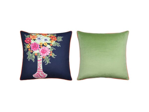 Dann Foley Lifestyle Double Sided Pillow Pink Vases Print And Navy Velvet Pillow