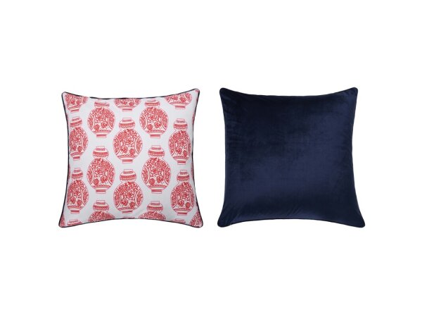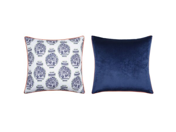 Dann Foley Lifestyle Double Sided Pillow Blue Vases Print And Navy Velvet Pillow