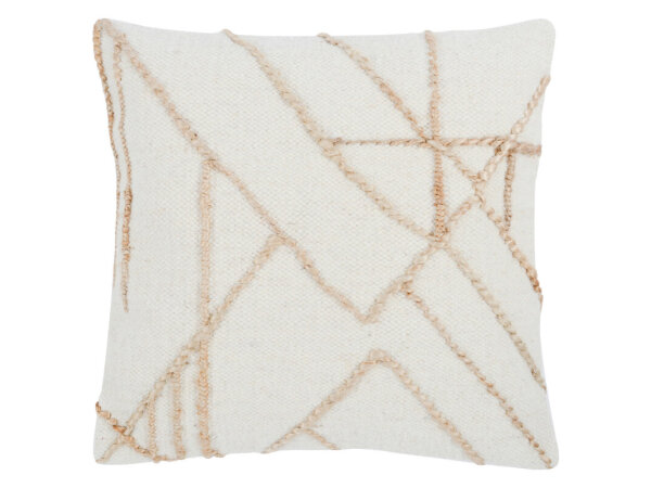 Crisp and contemporary, this pillow features handwoven wool accented with natural jute. Neutral colorways come alive with the bold, geometric