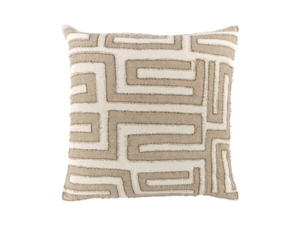 This pillow offers a traditional feel that grounds any space with a timeless appeal. Natural, neutral hues complement any color