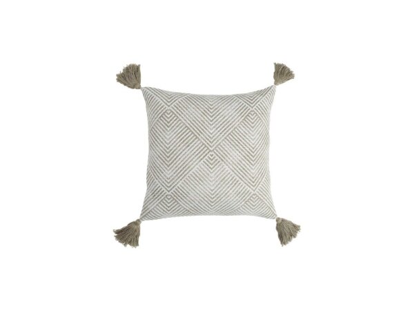 Cotton pillow cover with a textured woven look featuring hand-applied velvet applique and an embroidered outline in ivory and natural tones. Cover only (no insert).