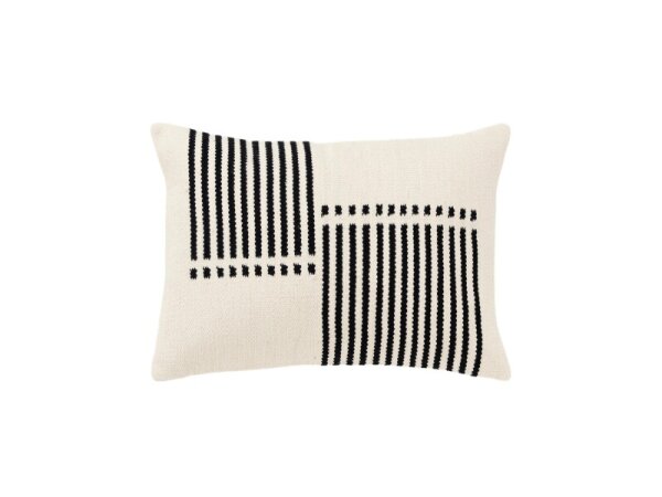 Cotton-polyester throw pillow cover with asymmetrical, Bauhaus-inspired color blocking; knife-edge finish and hidden zipper, 20x20 in. Insert not included.