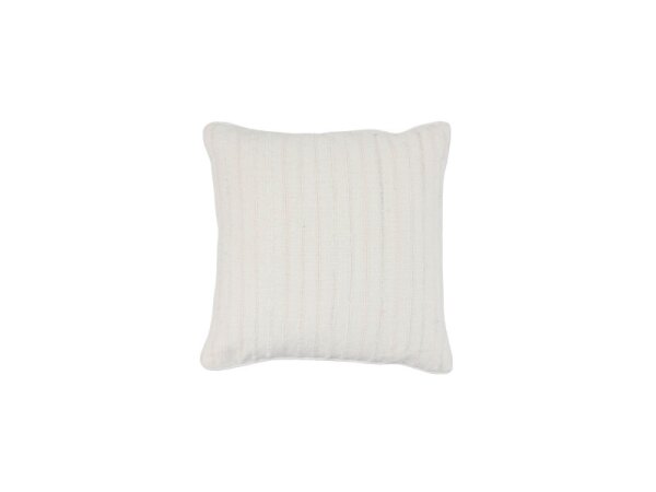 Linen-cotton throw pillow with subtle striped texture and a white cotton back, finished with matching welt and hidden zipper; 22 x 22 in. with down/duck feather insert.