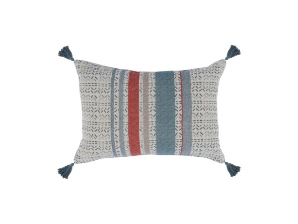 100% Belgian flax linen lumbar pillow with a digitally printed watercolor design, tassels, knife edge and hidden zipper. 14 x 20 in. cover only (insert not included).