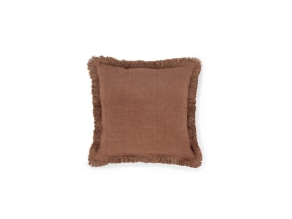 Textured linen-cotton pillow cover with a frayed flange edge and hidden zipper, 22x22 in. Insert not included.