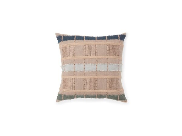 22 in. cotton pillow cover with a heavy-weave front and horizontal jute-and-cotton appliqué embroidery for a natural, canvas-like look. Cover only.