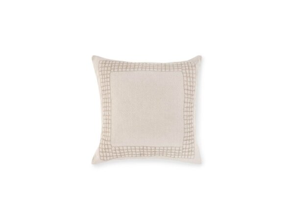 26 x 26 in. cotton/Belgian flax linen blend accent pillow with a hand-applied grid, embroidered pattern; cover only. Soft to the touch for layered, textural decor.