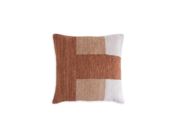 Modern terracotta throw pillow with a woven block design, knife-edge finish, and hidden zipper. Polyester/viscose cover; available as cover only or with a luxury down insert.