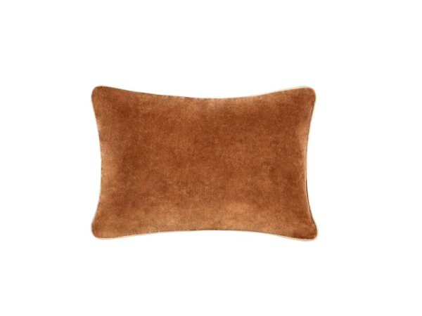 Stonewashed cotton velvet lumbar pillow cover with natural contrast piping and a reversible backing; cover only (insert not included).