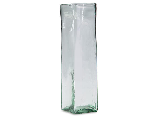 This vase, made of transparent green glass, provides a sturdy foundation for a full bouquet of your favorite long-stemmed blooms.
