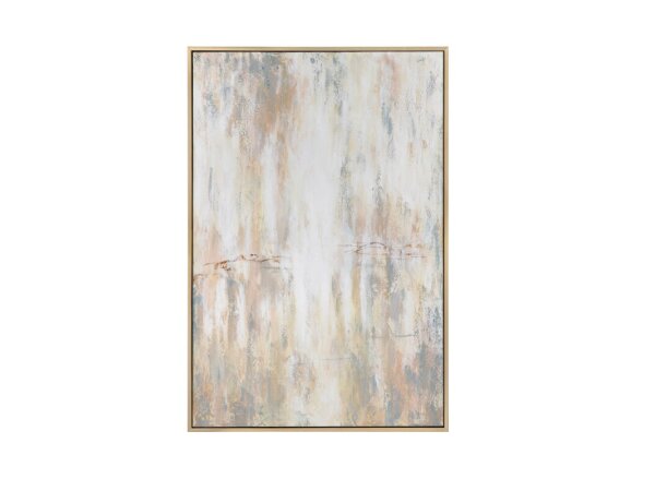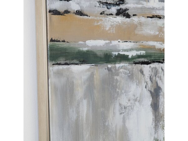 The Crestview Collection Emeralds Hand-painted Framed Canvas features rich shades of green, yellow and pink contrasted with the muted gray