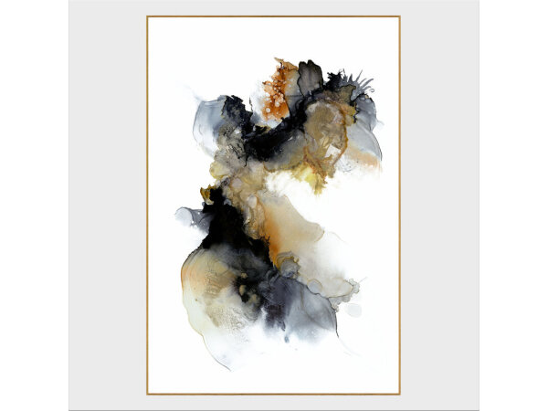 Rich textures and luminous gold accents define Gloss Painting, where abstract forms dance in harmonious rhythm. Encased in a gold