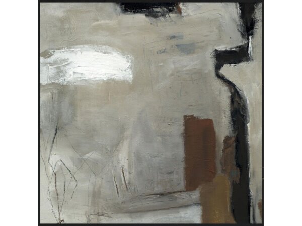 The Burden Painting carries an emotional depth through its expressive abstraction, framed elegantly in a black floating frame. Its layered