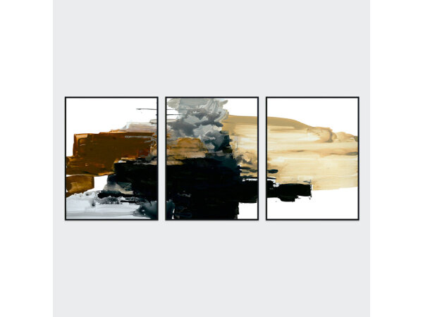 Three dynamic panels of Maverick Painting Triptych create a cohesive narrative of texture, movement, and abstraction. Suspended in sleek black