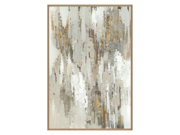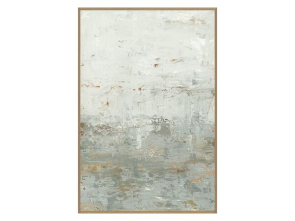 Buddy Whitlock’s painting exudes a sense of ethereal movement with its soft, flowing textures and neutral palette. Framed in a