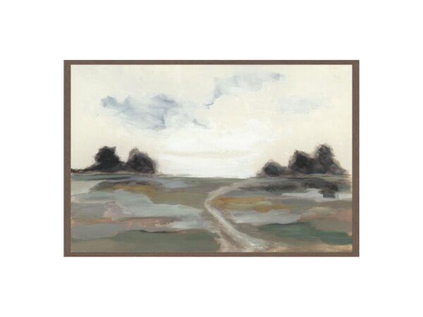 This landscape by Buddy Whitlock captures the essence of rural tranquility with its soft, muted tones and meandering path that