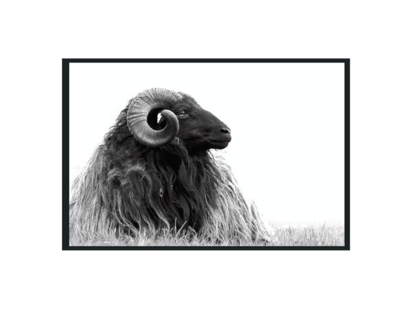 Capturing the essence of rugged beauty, this monochromatic Horn photograph showcases the strength and grace of a horned animal. Encased