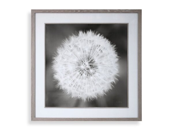 This black and white dandelion framed print is a great neutral piece of artwork that adds interest to any space.