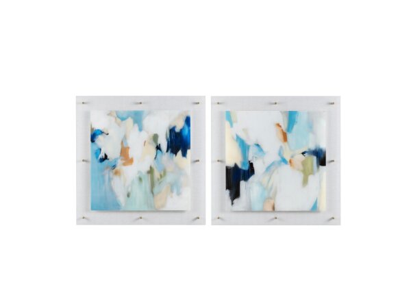 These refined coastal prints are an abstract take on a waterfront scene. Light blue and gray tones are highlighted by