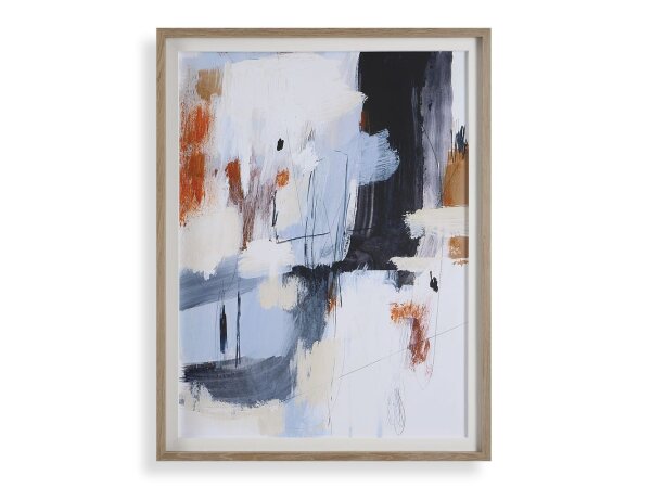 The Torrent framed artwork encompasses a striking blend of bright and neutral tones in an abstract composition. The solid wood