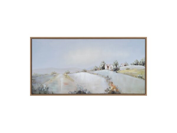 The “Surry” wall painting by Crestview Collection captures the essence of a tranquil meadow landscape, featuring rolling hills adorned with