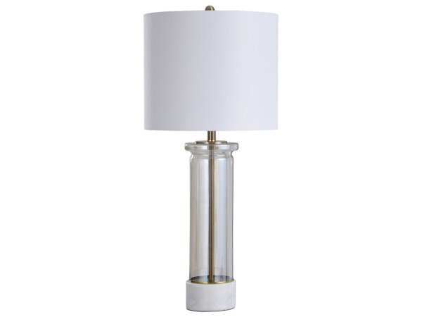 Royalgate Marble & Plated Glass Elegant Plated Glass Cylinder Body & Stone Marble Base Table Lamp