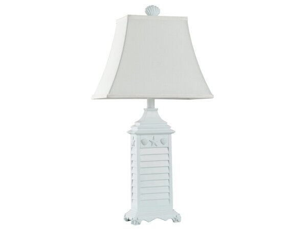 Nautical Theme Table Lamp In White Of Monterey Oatmeal Fabric Shade
