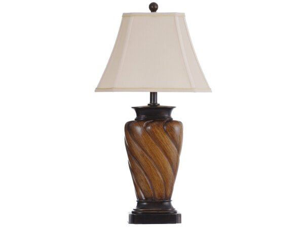 Classic Table Lamp With Toffee Wood Finish And Rectangle Cut Corner Bell Shade