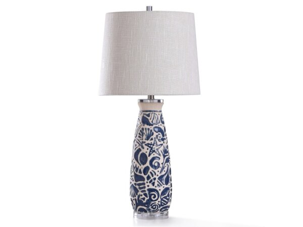 Maris Blue Table Lamp Tropical Coastal Blue Shell Motif Ceramic Body Table Lamp With Cl