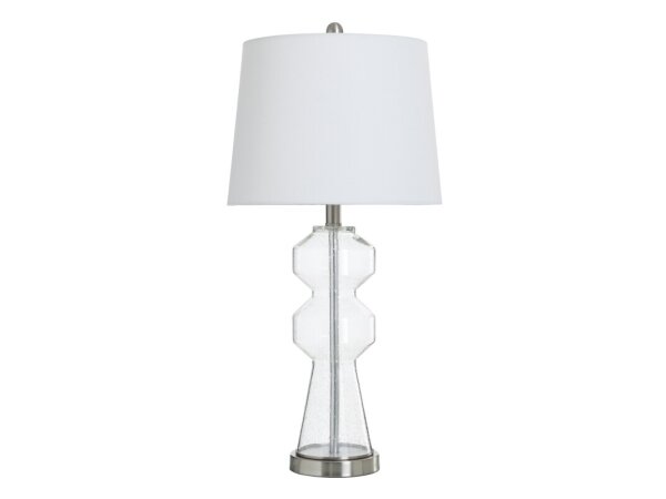 Nova Table Lamp Clear Seeded Glass Body With Brushed Steel Base Table Lamp 150 Watts