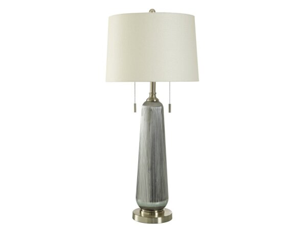 Lumi Silver Silver Ribbed Glass Table Lamp With Double Pull Chain Feature