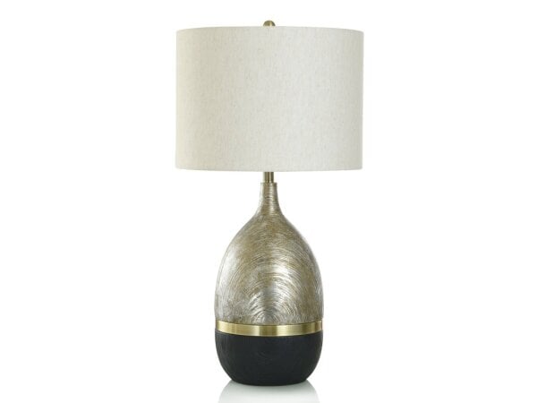 Metallic Silver Table Lamp Two Tone Matte And Polished Ceramic And Steel Body