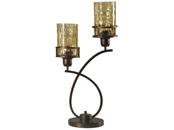 Bronze Metal Glass Shade Uplight With Base Switch Edison Bulbs Included